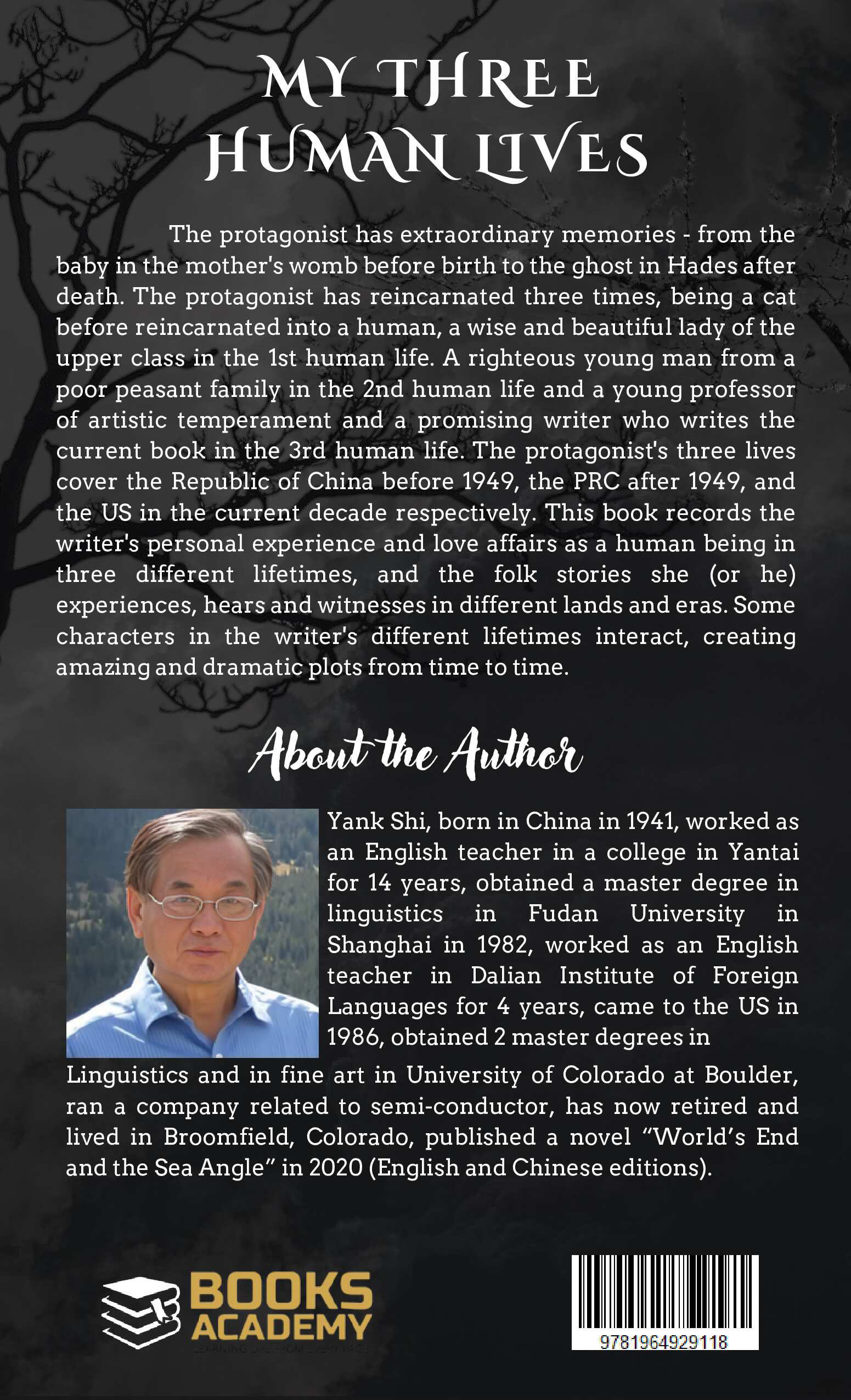 before reincarnated into a human, a wise and beautiful lady of the upper class in the 1st human life. A righteous young man from a poor peasant family in the 2nd human life and a young professor of artistic temperament and a promising writer who writes the current book in the 3rd human life. The protagonist’s three lives cover the Republic of China before 1949, the PRC after 1949 the US in the current decade respectively. This book records the writer’s personal experience and love affairs as a human being in three different lifetimes the folk stories she (or he) experiences, hears and witnesses in different lands and eras. Some characters in the writer’s different lifetimes interact, creating amazing and dramatic plots from time to time.